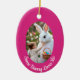 Bunny and Child photo pink blue Oval Frame Easter Ceramic Ornament