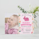 Bunny 1st First Birthday Invitation with custom photo. Girl Little Bunny. Easter Egg Bday Invitation. Rabbit. Egg Hunt. Watercolor Floral Flower Blush Pastel Pink Background. 1st 2nd 3rd 4th 5th 6th 7th 8th 9th 10th 11th 12th 13th 14th 15th, Any Ages. Printable Digital. For further customization, please click the "Customize it" button and use our design tool to modify this template.