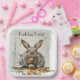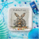 The birthday plate features an adorable, chubby bunny sitting front and centre, happily munching on a giant muffin. With its round belly, fluffy cheeks, and tiny paws holding the treat, the bunny looks extra cuddly and content.