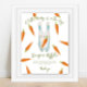 Gender neutral baby shower invitations. Featuring the saying 'A LITTLE BUNNY IS ON THE WAY!', an illustration of a watercolor bunny (rabbit) with carrot in paws, and many orange colour carrots. Matching items available.