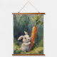 Bring a touch of woodland charm to your space with the Meadow Bunny Bliss Whimsical Watercolor Wood-Topped Tapestry, featuring a beautifully detailed watercolor illustration of an adorable bunny holding a large carrot, standing in a sunlit meadow surrounded by a lush green forest. The delicate brushstrokes and soft pastel hues create a dreamy, storybook-like feel, making it a perfect addition to nurseries, living rooms, or cozy reading corners. Suspended from a stylish wood top, this tapestry blends rustic elegance with artistic whimsy, adding warmth and character to any wall. Whether as a statement piece or part of a nature-inspired décor, this enchanting tapestry brings a sense of tranquillity and charm to your home.