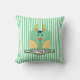 Bunny Face on Stripes - Green (Personalized) Throw Pillow