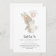 A sweet bunny rabbit with a floral crown, holding a pink balloon. You can change the number 1 in the balloon to any number, and edit all of the other text, or remove the number if you prefer. You can also change the colour of the balloon in this design.
