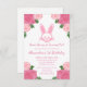 Ce design féminin présente de magnifiques roses roses et pivoines roses et un visage mignon et souriant de lapin pour l'anniversaire d'une fille. Modèle est pour un premier anniversaire mais peut être customisé pour n'importe quel âge