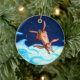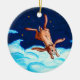 A charming ornament that bears the image of a rabbit flying above the clouds on a starry night. This image is from a children's book created in 1998 called Pooka's Flight.