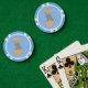 This awesome set of poker chips features an adorable image of a happy bunny created using vector art. The bunny is grey and it has a big smile on its face. The bunny is hatching from an egg. This weird and funny design is sure to amuse anyone.