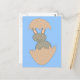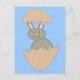 This postcard features an adorable image of a happy bunny created using vector art. The bunny is grey and it has a big smile on its face. The bunny is hatching from an egg. This weird and funny design is sure to amuse anyone.