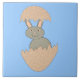 This awesome tile features an adorable image of a happy bunny created using vector art. The bunny is grey and it has a big smile on its face. The bunny is hatching from an egg. This weird and funny design is sure to amuse anyone.