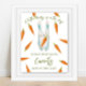 Gender neutral baby shower invitations. Featuring the saying 'A LITTLE BUNNY IS ON THE WAY!', an illustration of a watercolor bunny (rabbit) with carrot in paws, and many orange colour carrots. Matching items available.