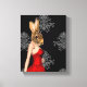 Easily personalize this fun cute collage of a bunny rabbit animal wearing red prom, ballroom dress on a black vintage damask background with your name or text to create a unique humourous product.