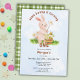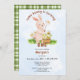 Make your child’s first birthday extra special with this adorable bunny-themed invitation! A watercolor bunny, a basket full of daisy flowers, and a tiny buzzing bee set the scene for a picture-perfect celebration. With a soft blue sky, dreamy clouds, and a touch of script and serif fonts, this design is as sweet as your little one! The easily customizable text allows you to add all the party details in a snap. Plus, the green plaid pattern on the back adds a classic, cozy feel.