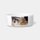 This is a heavy, durable bowl decorated with Tibbies of many colors, the perfect size for hungry/thirsty Tibs. The design is interesting and printing clear.