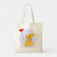 This cute bunny is holding a heart balloon to say I love you. It is wearing a blue bow, standing on a sea of pink flowers. This is a pretty bag perfect for girls who love rabbits.