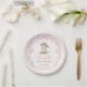 Bunny Pink Bow Gingham Baby Shower Paper Plate