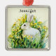 Bunny Rabbit Framed Miniature Watercolor Art Print. Small pece of art on a ornament. Spring eastertime decoration. Tiny animal Art.