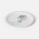 Bunny rabbit with balloons blue baby boy shower paper plate.