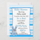 Adorable blue striped cute bunny rabbit themed baby shower invitation.