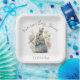 Cute baby bunny rabbit in a blue dress soft pastel colours surrounded by pretty flowers on a simple white background event paper plates.  So cute for that special baby girl shower.  Just adorable and perfect for your baby shower.  Matching products available.  100% customer satisfaction with “Zazzle”