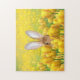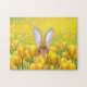 Bunny rabbit peeking out from yellow tulips puzzle