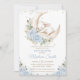 Bunny Rabbit Moon Soft Blue Floral Boy Baby Shower Invitation