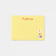 This set of post it notes features a yellow background with your name written at the top in red. At the bottom right corner of the paper is a cute white bunny rabbit sitting on a stack of books reading. Purchase your post it notes today!