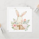 Cute watercolor hand drawn bunny rabbit in a basket baby shower invitation. Pink houndstooth. The simple soft colours sets the tone for a sweet bunny rabbit themed baby shower. Such a sweet invitation for that special event.