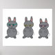 Bunny Rabbits Wearing Glasses Grey Poster