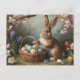 Bunny with Easter Egg Basket and Spring Garden Holiday Postcard