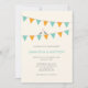 A modern wedding invitation featuring love birds sitting atop bunting banners. Please ask about custom colours!