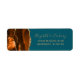 Le bord gauche de cette élégante étiquette d'adresse de retour de faire-part de mariage moderne comporte une bordure d'aquarelle orange brûlée, recouverte d'une parties scintillant en faux or. Le texte personnalisable combine écriture manuscrite couleur or et polices de cuivre sur un arrière - plan turquoise.