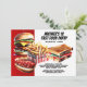 A vibrant, striking and fun watercolor ai graphic featuring a double patty cheeseburger with lettuce, melted cheese, ketchup and mustard on it; a hot dog with oodles of sauce; a red and white striped box with french fries in it and a toasted sandwich all set against a deep red and white background that has editable black text templates on it for your custom wording. This design is ideal for a "fast food"; "junk food"; "in n out burger" or a "build your own" food truck theme retirement, birthday, stag or bachelor bash or a business event.