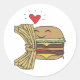 Cute cartoon of a cheeseburger hugging a bunch of fries. You can change the background to which ever colour you like by customizing the product and choose "Edit" and then background colour.
