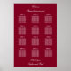 Burgundy 12 Table Wedding Seating Chart Poster, please personalize the names of the couple and the names of the guests along with any of the other text that you may wish to personalize. A stylish seating chart poster featuring elegant white text on a lovely burgundy colour background.
