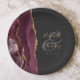 Burgundy Agate Marble Gold Script Wedding Paper Plate