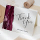 This elegant modern wedding thank you card features a burgundy watercolor agate border trimmed with faux silver glitter. The customizable text combines the words "Thank You" in charcoal gray handwriting script and the names of the bride and groom in italic font on a white background.