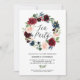 Burgundy and Blue Floral Wreath Tea Party Invitation. Invite family and friends to a tea party with this feminine and rustic invitation. This customizable invitation features watercolor floral wreath of blue, burgundy, red and blush flowers with foliage. This floral invitation is perfect for autumn and bohemian themed events. Matching items are available.