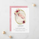 Blush pink and burgundy (marsala) floral geometric baby birth portrait shaped photo announcement card with gold glitter geometric frame designed to be quickly and easily customized to your event specifics.