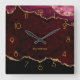 Burgundy and Gold Agate Personalized Square Wall C Clock