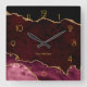 Burgundy and Gold Agate Personalized Square Wall Clock