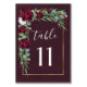 Burgundy and Gold Floral Watercolor Fall Wedding Table Number