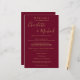 Elegant burgundy and gold signature script wedding weekend program featuring signature style names. Personalize with your wedding weekend details set in chic white lettering. Designed by Thisisnotme©