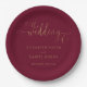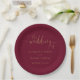 Burgundy And Gold Heart Script Wedding Paper Plate