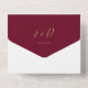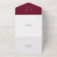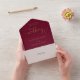 All in one burgundy and gold wedding invitation featuring elegant hearts script typography and monogram initials. The invitation includes a perforated RSVP card with your wedding website QR code and details. Designed by Thisisnotme©