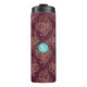 Burgundy and gold vintage french wine themed tumbler with a turquoise blue monogrammed gemstone.
