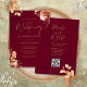 Burgundy And Gold QR Code Fall Wedding Invitation