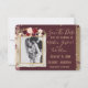 Burgundy and Gold Save The Date with gold confetti on the backside. Personalize with your own text and image.