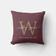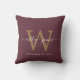 Burgundy and Gold Wedding Monogram Throw Pillow