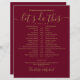 This simple elegant burgundy and gold wedding schedule-timeline can be personalized with your wedding details in modern lettering. Designed by Thisisnotme©