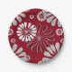 Burgundy and Grey Floral Pattern Paper Plate