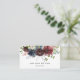 Appointment business card features a burgundy and navy blue watercolor floral drop with eucalyptus and gold accents. Perfect for hair stylist, makeup artist, salon and spa.